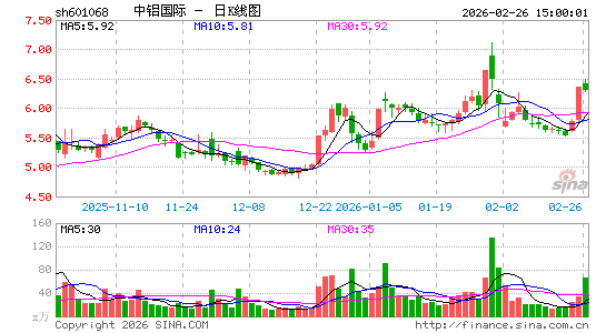 截至发稿,中铝国际(02068.HK)涨32.08%、中国铁建(01186.HK)涨4.10%、中国中冶(01618.HK)涨4.08%、中国交通建设(01800.HK)涨4.08%。