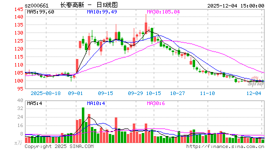 5月30日,长春高新技术产业(集团)股份有限公司股价出现快速跳水,盘中一度下探至102.88元,创近四个月新低。截至当日收盘,长春高新股价报收于104.49元(前复权,下同),单日下跌6.05%,最新市值约为422.58亿元,市值单日蒸发27.22亿元。