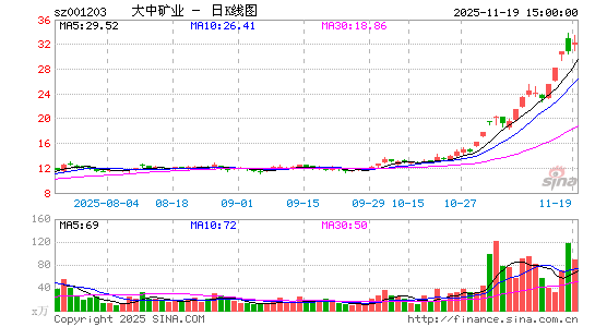 大中矿业(001203)8月11日晚间发布半年报,上半年实现营业收入17.93亿元,同比下降34.35%;归母净利润约5.05亿元,同比下降32.26%;基本每股收益0.34元。
