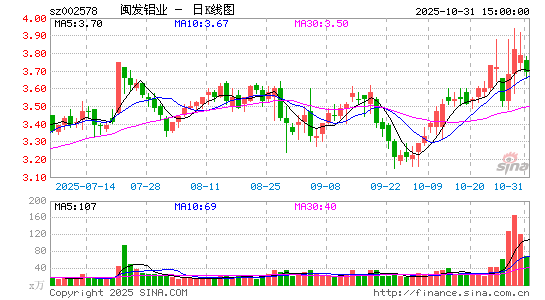 闽发铝业2连板,中色股份涨停,中一科技、株冶集团、嘉元科技、诺德股份、和胜股份、明泰铝业、常铝股份、金徽股份等跟涨。