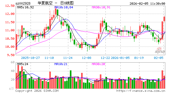 机场航运板块震荡走高,华夏航空涨停,吉祥航空、春秋航空、南方航空、中国国航、中信海直等跟涨。