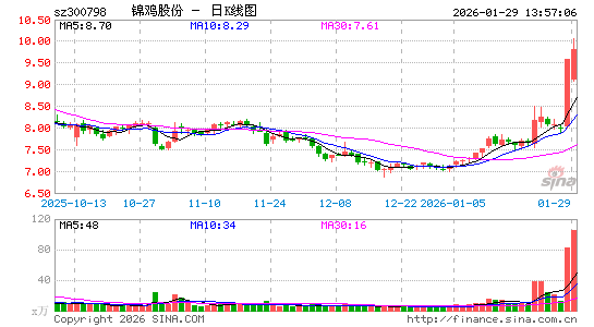 锦鸡股份公告,持股5.72%的股东珠海大靖计划减持不超过1.50%的公司股份。