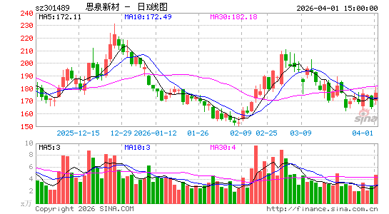 思泉新材(301489.SZ)于2023年10月24日上市,距今不过4个多月,其发行价格41.66元。上市之初,思泉新材最高上摸121.98元,在今年1月份里,思泉新材的股价跌跌不休,最低于2月8日下摸32.85元,已处于破发状态。不过春节后画风一转,思泉新材股价掉头上攻,截至3月5日股价已达到92.98元/股。2月8日至3月5日共计13个交易日里,累计涨幅161.4%。尤其3月1日公司股票录得20%涨停,3月5日思泉新材的涨幅为19.21%,险些再完成一个20cm涨停。目前思泉新材的总市值为53.63亿元,流通市值为12.72亿元。